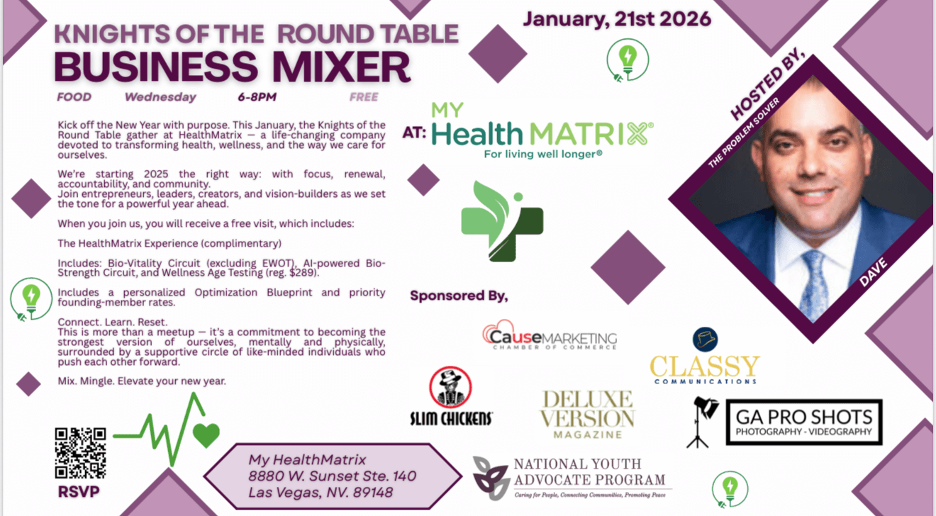 Kick off the New Year with purpose. This January. the Knights of the Round Table gather at HealthMatrix - a life-changing company devoted to transforming health, wellness, and the way we care for ourselves.