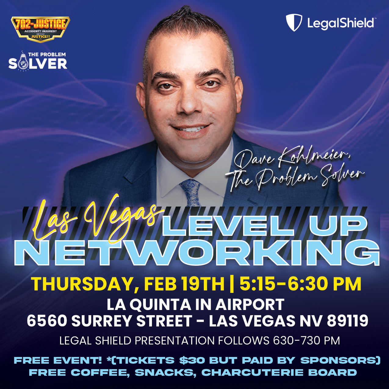 Las Vegas Referral Network Level Up Dinner and Networking sponsored by 702-JUSTICE and Legal Shield